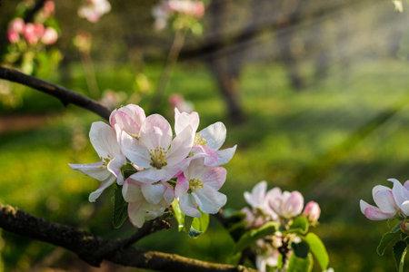 咲く果樹園春のシーズン 春の白い繊細な花は聞いた味楽しみです デスクトップ用壁紙を興味深い の写真素材 画像素材 Image
