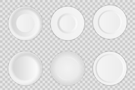 透明な背景に白い皿 食べ物 台所 磁器の食器用の台所料理 お使いの製品のベクターイラスト 食器デザインエレメント のベクター画像素材 ロイヤリティフリー