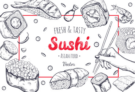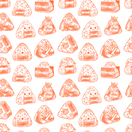 アジアン料理 異なるおにぎりのかわいいセットです 手描きイラストのイラスト素材 ベクタ Image