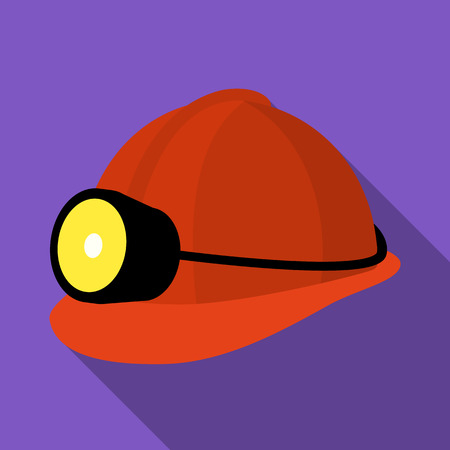 懐中電灯で鉱山労働者のヘルメット ギア掘り石から保護するため フラット スタイルのベクトル シンボル ストック イラストの鉱山業界の 1 つのアイコン のイラスト素材 ベクタ Image
