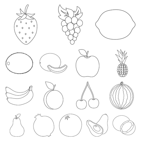 デザインのためのセットコレクションで異なるフルーツモノクロアイコン 果物やビタミンベクトルシンボルストックウェブイラスト のイラスト素材 ベクタ Image