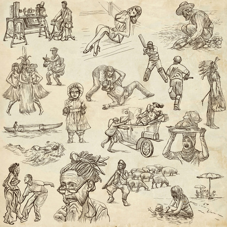 スケッチでは 人間のレースの色を統一しました 人と原住民のセット 手描きイラスト集です フル サイズの手描きイラスト オリジナル手書きスケッチのパック の写真素材 画像素材 Image