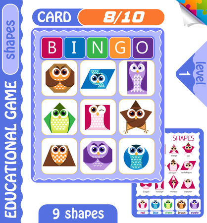 フクロウの形の形をした就学前の子供のための教育ビンゴゲーム ビンゴカード 漫画ベクトルイラスト のイラスト素材 ベクタ Image