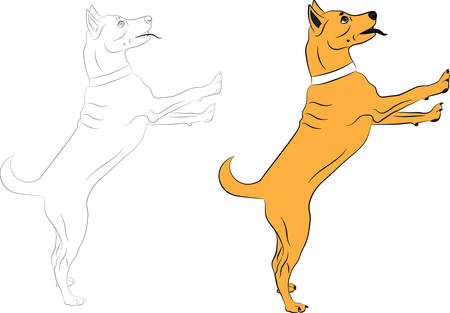 犬は誰かに何かを求めてジャンプします 黒し 白の背景にベクトル イラストの色のイラスト素材 ベクタ Image