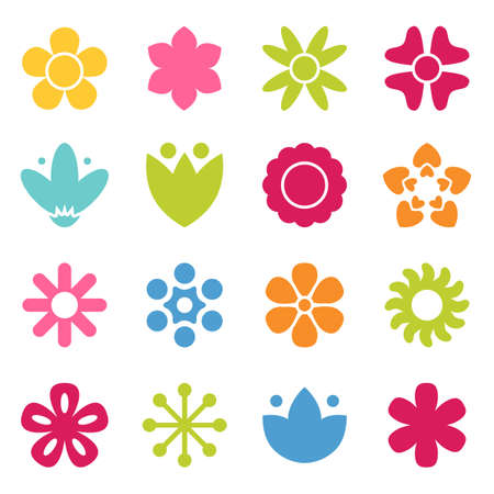フラット スタイルの花アイコンのコレクション デイジーのシンボルやロゴ テンプレート 絵文字 花のシルエット カラフルな 70 年代レトロなベクター イラストです 最小限のスタイルのイラスト素材 ベクタ Image