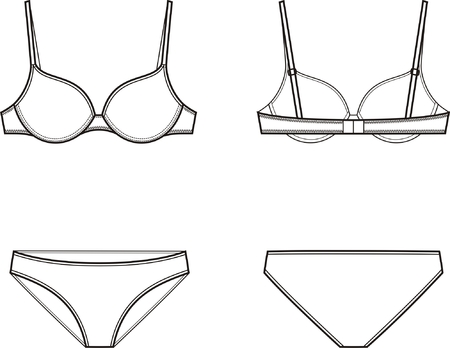 イラスト女性の下着のブラとパンティー前面を設定し 戻って件のイラスト素材 ベクタ Image