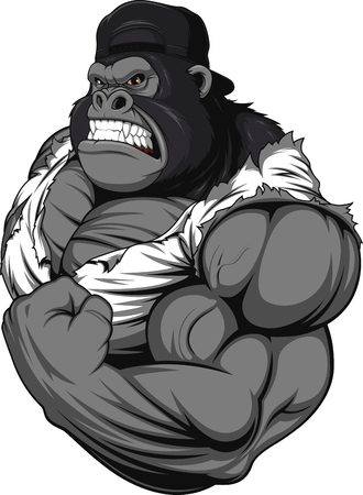 ゴリラのボディービルダーの黒と白のイラスト イラストレーションのベクターアート素材や画像を多数ご用意 Istock