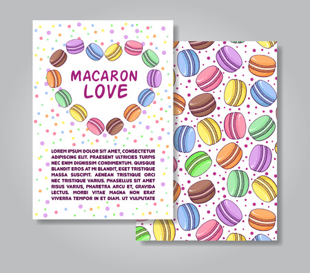 マカロンのイラストとパターンの背景を持つ 2 つの側面招待カード デザイン ベクトル カード 手紙 バナー チラシのデザイン テンプレートです 使用ことができますがお客様の製品やビジネスを促進するため のイラスト素材 ベクタ Image