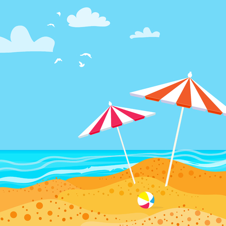 パラソル傘と長椅子 海 夏のリゾート休暇の背景 水ビーチでの休暇 ベクター イラストをデザイン のイラスト素材 ベクタ Image