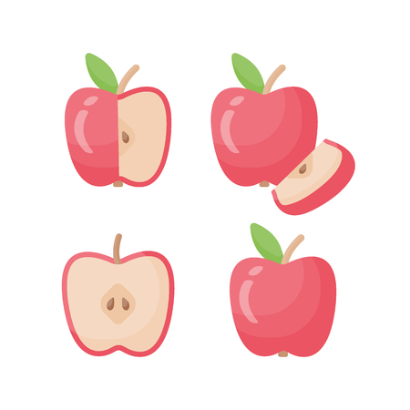 アップルベクトルフラットアイコンセット 食品のフラットデザイン 白い背景に隔離されたフルーツオブジェクト かわいいベクトルイラストのイラスト素材 ベクタ Image