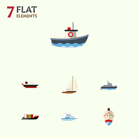 貨物や配信 ヨットなどのベクトル オブジェクトのフラット アイコン容器セット 船 ボート トランスポート要素も含まれています のイラスト素材 ベクタ Image