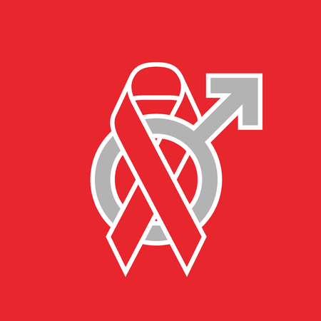 赤いリボンのエイズ Hiv 雄記号アイコン イラスト 赤の背景に分離された単色概要ストローク デザイン セットのイラスト素材 ベクタ Image