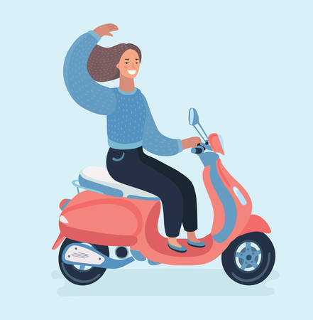 レトロなバイクにかわいい女性のベクトル漫画イラストのイラスト素材 ベクタ Image