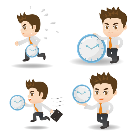 成功と興奮してビジネスマンの漫画イラスト セットを保持時計のイラスト素材 ベクタ Image