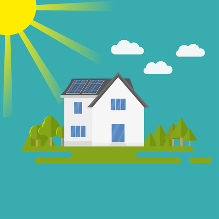 家とソーラーパネルのイラスト 無料のフリー素材 イラストエイト