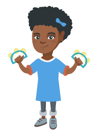 フルートをアフリカ系アメリカ人の少女 彼女のフルートの練習をして女の子の完全な長さ フルートを持つ集中少女 ベクター スケッチ漫画イラスト 白背景に分離します のイラスト素材 ベクタ Image