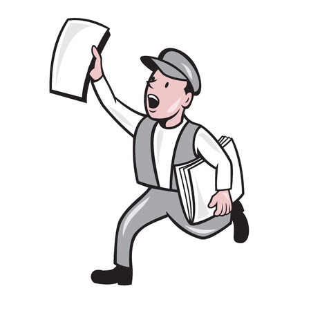 新聞配達販売新聞漫画のスタイルで行われる分離の背景に円の中に設定を叫んでのイラスト のイラスト素材 ベクタ Image