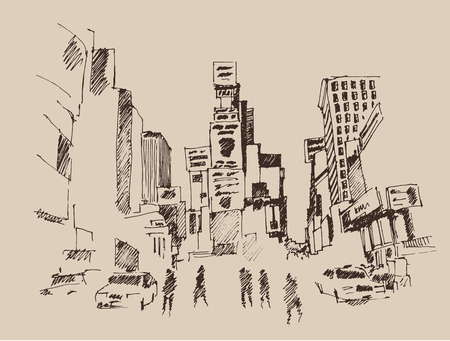 ニューヨーク図面 タイムズスクエアの夜景 手描きのイラスト のイラスト素材 ベクタ Image