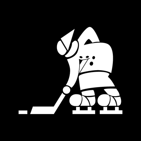 平面ベクトルのホッケー選手 老婆の様式化されたイメージ ホッケーのスティックとパック スケートのフェルト ブーツで祖母がロシア人 のおばあさんのユーモラスなイラスト のイラスト素材 ベクタ Image