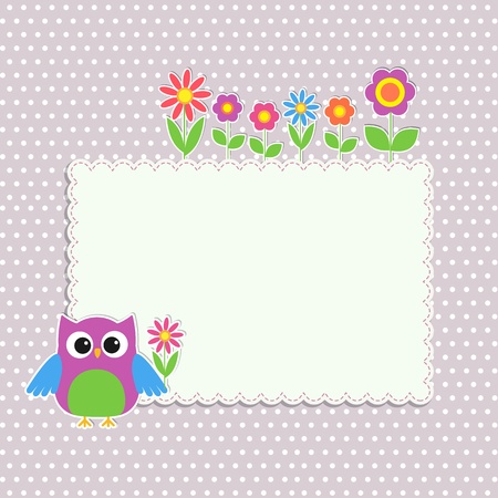 かわいいフクロウと花のフレームのイラスト素材 ベクタ Image