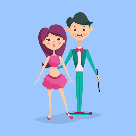 マジックショーの人々にジャグラーアクロバットのイリュージョニスト補助の色付きフィギュアのセット 平らな分離型ベクターイラスト のベクター画像素材 ロイヤリティフリー