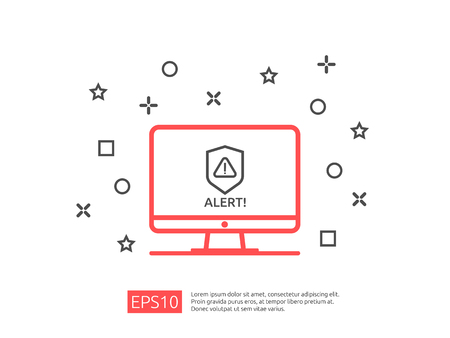 感嘆符記号記号付きの注意警告記号 インターネット Vpn セキュリティ保護のシールドラインアイコン コンセプトベクトルイラスト のイラスト素材 ベクタ Image