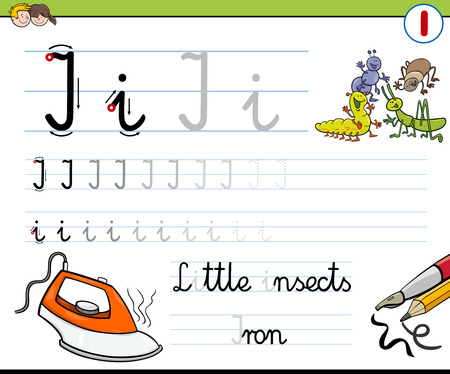 ライティングの漫画イラストと練習の手紙私ワークシート幼児期の子供のためのイラスト素材 ベクタ Image