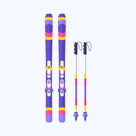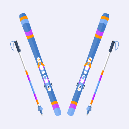 ペアのスキー板と棒 棒 フラット テキストのためのスペースとスタイルのベクトル図です フラット ベクトル スキーとスキー ストック カラフルなイラストの イラスト素材 ベクタ Image