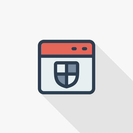 保護シールド薄線平色アイコンベクトルイラスト付きプログラムウィンドウアイコン カラフルな長い影のデザインで白い背景に隔離されたピクトグラム のイラスト素材 ベクタ Image