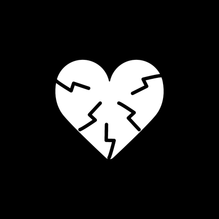 ひびの入ったハートのベクター アイコン 黒と白の愛のイラスト 心の固体の線形アイコン のイラスト素材 ベクタ Image