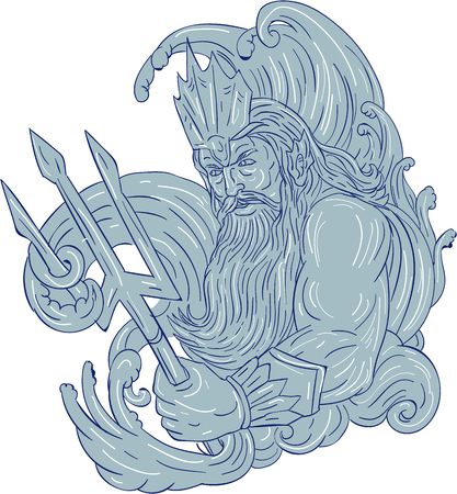 ギリシャの神話の神ポセイドンの漫画イラストのイラスト素材 ベクタ Image