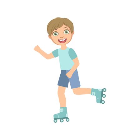 白い背景の分離された女の子ローラー スケートかわいい楽しい漫画のスタイルでアウトドア シンプルなデザイン イラストのイラスト素材 ベクタ Image