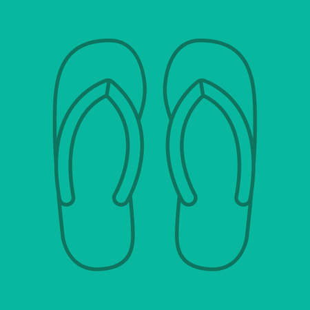 フリップフロップリニアアイコン 夏のスリッパ 色の背景に細い線のアウトライン記号 ベクターイラストのイラスト素材 ベクタ Image
