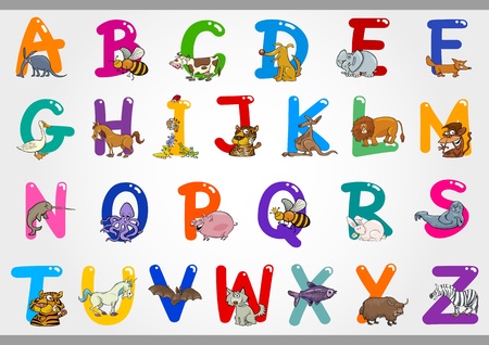 変な動物と Z A からカラフルなアルファベット文字セットの漫画イラストのイラスト素材 ベクタ Image
