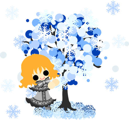 冬と女の子の可愛いイラスト 冬の木 のイラスト素材