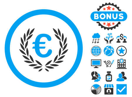 ユーロのボーナスのシンボルと栄光のアイコン ベクトル イラストのスタイルは バイカラー フラット象徴 青と灰色の色 白の背景です のイラスト素材 ベクタ Image