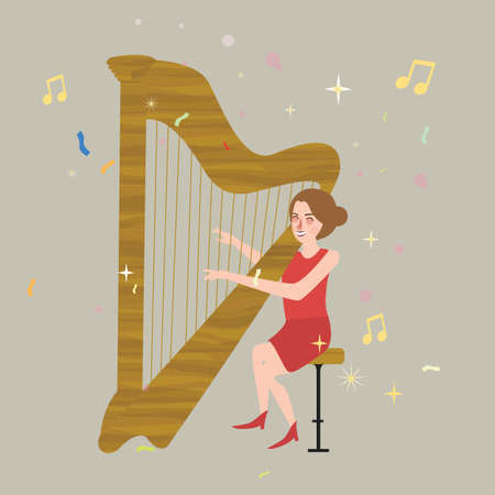 文字列メロディー イラストとハープの楽器を弾いている女の子のイラスト素材 ベクタ Image