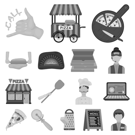 デザインのためのセットコレクションのピザとピッツェリアモノクロアイコン スタッフと機器ベクトルシンボルストックウェブイラスト のイラスト素材 ベクタ Image