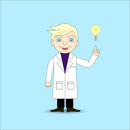 アイデアベクトルイラストを持つ若い笑顔の科学者のイラスト素材 ベクタ Image