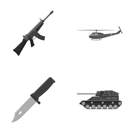 M16 のライフル ヘリコプター 戦車 コンバット ナイフを攻撃します 軍と軍黒スタイル ベクトル シンボル ストック イラスト Web コレクションのアイコンを設定します のイラスト素材 ベクタ Image