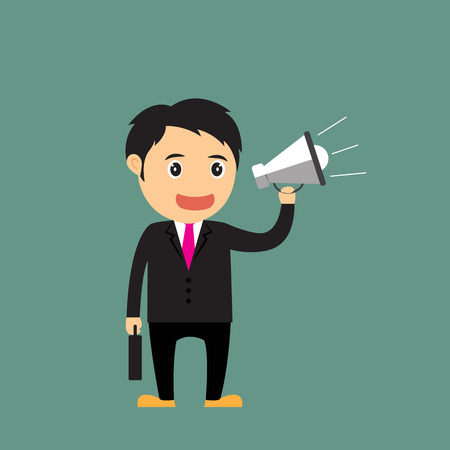 ベクトル漫画の実業家 上司 マネージャー のイラスト広告 プレゼンテーションにメガホンを開催します のイラスト素材 ベクタ Image