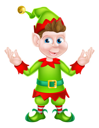 かわいい幸せ漫画クリスマス エルフのイラストやサンタの記号でクリスマスの一つボード ヘルパーのイラスト素材 ベクタ Image