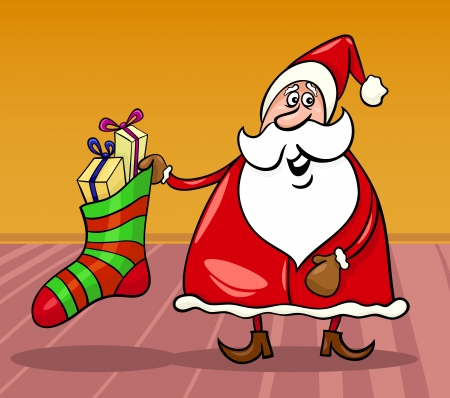 漫画面白いサンタ クロース イラストや大きな靴下のクリスマス プレゼントやギフトの完全パパ ノエルのイラスト素材 ベクタ Image