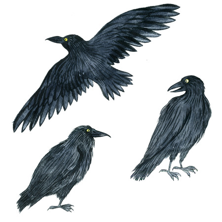 白い背景にペイントされた鳥のカラス のイラスト素材