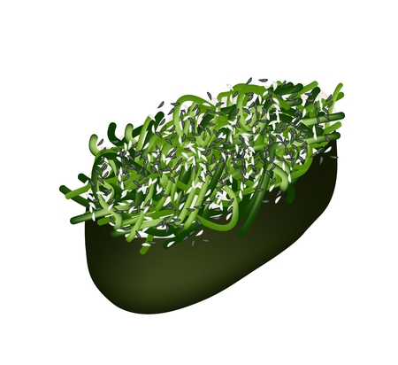 日本料理 冷やしワカメ寿司や海藻サラダにぎり白い背景で隔離のイラスト のイラスト素材 ベクタ Image