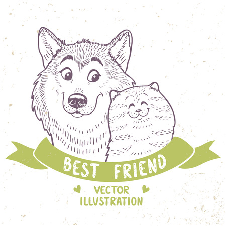 スタイリッシュなシルエットのかわいい犬ハスキー犬と猫を漫画します ベクトル イラストのイラスト素材 ベクタ Image