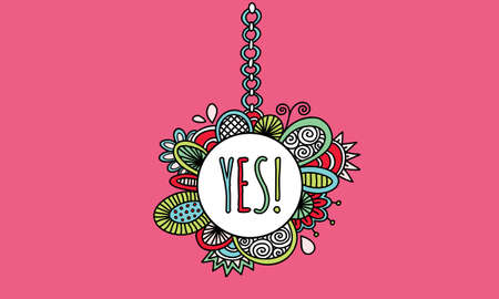 ピンクの背景の図形と渦巻きチェーンからぶら下がっている Yes サインの明るいイラストのイラスト素材 ベクタ Image