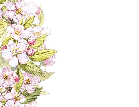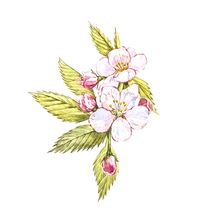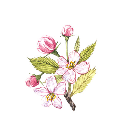 ピンクのリンゴの花 桜 アーモンドの花 水彩花枝 のイラスト素材