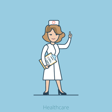 直線フラットの看護師ベクトル イラスト 医療 医学 医学の専門家 医者の専門職の概念 のイラスト素材 ベクタ Image