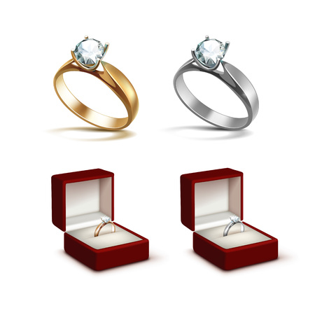 分離した透明な背景のベクトル図に金や銀の金属の結婚指輪セットのイラスト素材 ベクタ Image